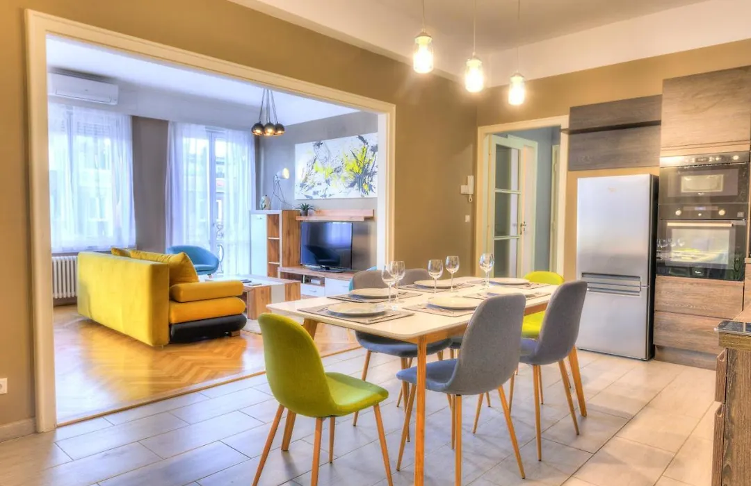 Central Capital lägenhet ligger 350 meter från tunnelbanestationen Bajcsy-Zsilinszkygatans och nära Ungerska statsoperan. Denna lägenhet har 10 rum, som är utrustade med sitthörna, mathörna och plattskärms-TV med satellitkanaler.